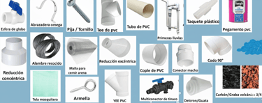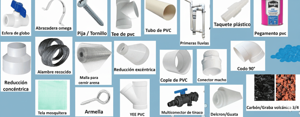 Algunos elementos utilizados en la construcción de un sistema de captación de lluvia.